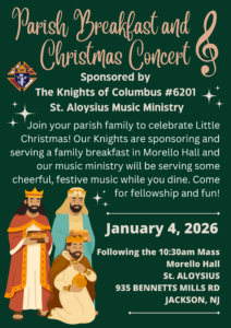 Confessions – Saturday 4:00pm – 4:45pm or schedule an appointment by calling the the parish office at 732-370-0500 ext. 204